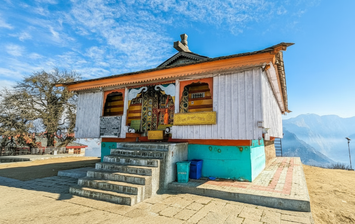 The Bijli Mahadev Temple is one of the most sacred and spectacularly sited hilltop temples above Kullu in Himachal Pradesh. Lying at an altitude of about 2,460 meters, it commands breathtaking views of the Parvati Valley, Beas River, and the surrounding Himalayan ranges. The temple has a mystical phenomenon whereby lightning strikes the Shiva lingam every few years and breaks it; then the priests restore it with butter and sattoo, following an ancient ritual.